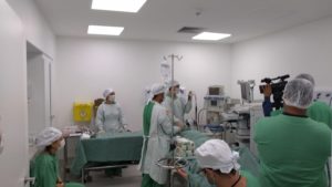 Um deles foi uma biópsia percutânea, conduzida pelo Dr Maurício Amoedo que, durante a intervenção, descreveu e discutiu o procedimento. E o outro foi o EBUS (ultrassonografia endobrônquica), exame realizado com excelência pelo Dr. Ricardo Oliveira, um dos maiores experts do Brasil. Outro destaque foi a cirurgia de câncer realizada nas dependências do Hospital Santa Izabel pela Dra Gabriela Arruda, juntamente com a Dra Elisiane Gadelha e Dr César Machado.