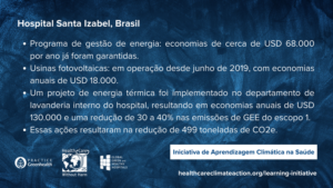 Ao todo, foram publicados 38 estudos de hospitais de 17 países, feitos por instituições de saúde que obtiveram resultados expressivos na redução das emissões de gases de efeito estufa, através de implantação de projetos, sendo o Hospital Santa Izabel a única exclusivamente do Norte/Nordeste.