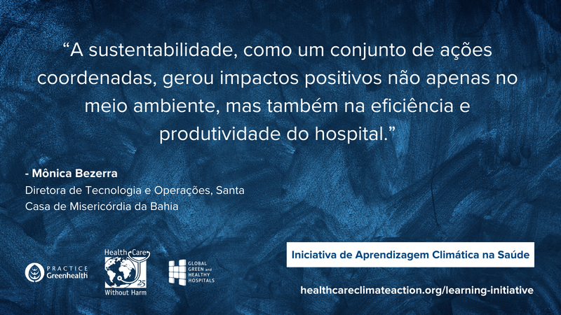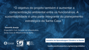 “A sustentabilidade, como um conjunto de ações coordenadas, gerou impactos positivos não apenas no meio ambiente, mas, também na eficiência e produtividade do hospital”, destacou a diretora de Tecnologia e Operações da Santa Casa da Bahia, Monica Bezerra. “O objetivo do projeto também é aumentar a conscientização ambiental entre os funcionários. A sustentabilidade é parte integrante no planejamento estratégico da Santa Casa da Bahia” afirmou o gerente de Infraestrutura da Santa Casa da Bahia, Eduardo Araújo.
