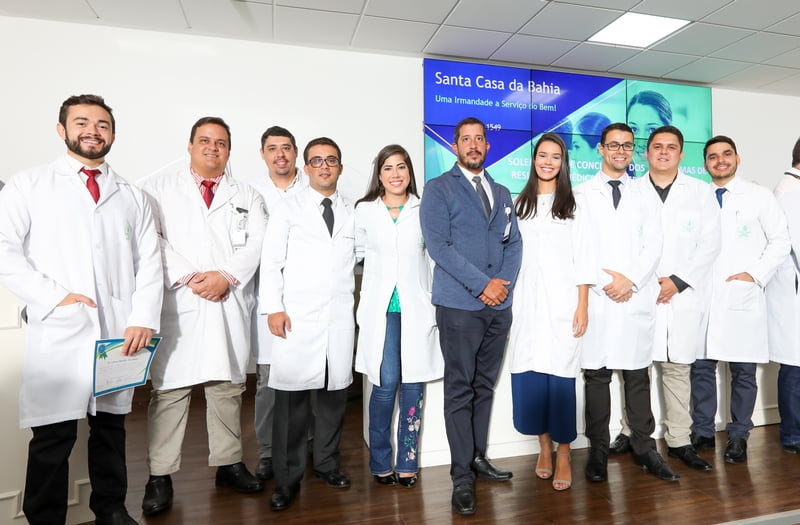 A Santa Casa da Bahia promoveu, no último dia 14, a cerimônia de conclusão dos cursos de Residência Médica de 46 residentes que concluíram a especialização no Hospital Santa Izabel. O evento foi realizado no auditório Jorge Figueira e contou com a presença do provedor José Antônio Alves que, na ocasião, ressaltou a tradição de excelência da Santa Casa na formação de especialistas médicos. “Muito nos orgulha o trabalho executado pelos médicos supervisores e preceptores, projetando o Santa Izabel como um dos mais importantes centros de formação de profissionais em diversas especialidades da Medicina”, afirmou.
