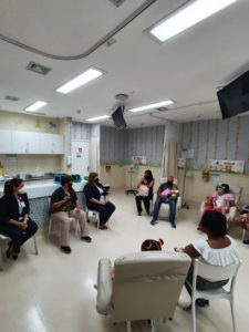 Logo cedo, crianças em tratamento oncológico, pais e profissionais de saúde foram convidados para um encontro com a artista Nairzinha, que promoveu um bate papo interativo, com contação de histórias, danças, brincadeiras, cirandas, cantigas e uso de tecnologia (tabletes com aplicativo especial). Ela também alertou para a importância do cuidado afetivo. Estimular o lúdico para deixar a criança mais confortável com a internação é parte integrante do atendimento no Hospital Santa Izabel.